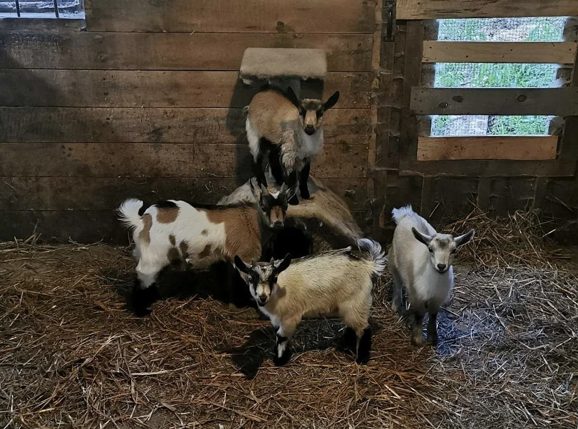 We are so happy to have our two doelings, Daisy and Buttercup, join our family in 2022. Not only do they help us around the farm with organic weed control but they are the sweetest little girls. Both girls are energetic, loving, and make us laugh all the time. As new goat owners we had lots of questions and Becki and her family were always there to help us with whatever we needed. We can’t wait to expand our herd with more goats from Seguin Farm in the future. Highly recommended!